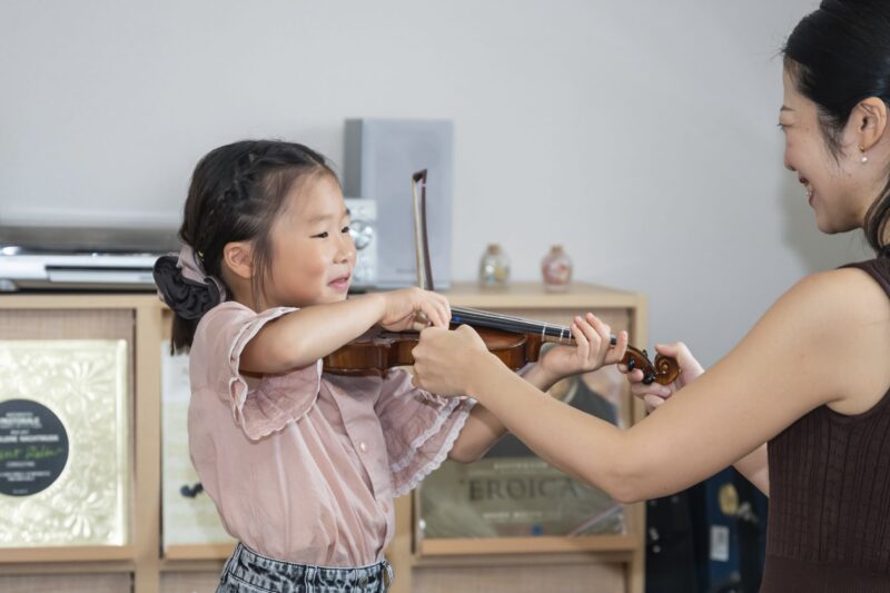 1歳〜80歳の生徒さんを200名以上指導してきた経験から、生徒さんの身体の大きさに合わせて、楽器の構え方や奏法をお伝えできます。身体に負担のない弾き方ができるようになると、良い音を楽に奏でたり、長時間集中して演奏できるようになります。